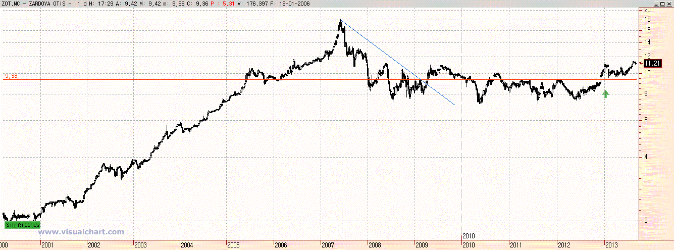 Zardoya Otis además de ofrecer un gran dividendo, vemos que está rompiendo la lateralidad que viene ofreciendo desde el 2009.