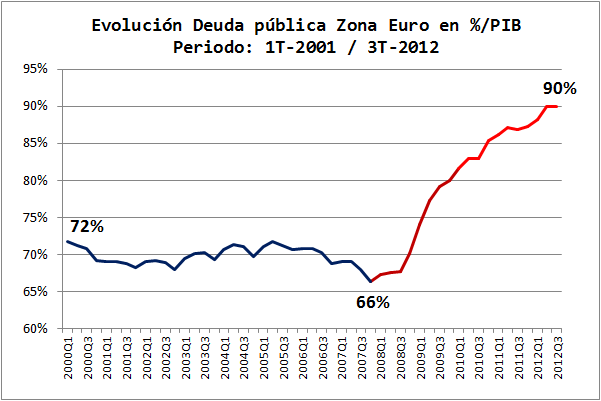 Este extracto no es una visión catastrofista del autor de este blog. Es una traducción de la página 49 del último informe del FMI, donde recetan unas medidas para la disminución de la deuda de los gobiernos. No olvidemos que los países desarrollados han disparado su deuda pública hasta alcanzar un nuevo récord histórico sin guerras de por medio, hasta un 92% del PIB en la zona euro. La cuestión es cómo revertir tal dinámica.