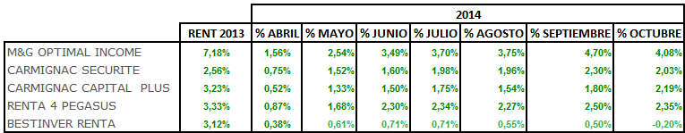 Sigue la evolución positiva de la cartera de fondos de bajo riesgo, y reflejamos la rentabilidad que lleva desde enero hasta octubre de 2014.