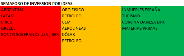 Introducimos en verde a las materias primas, aunque puede ser pronto, hay que ser audaz en las propuestas, sobre todo si no hay muchas alternativas de inversión.