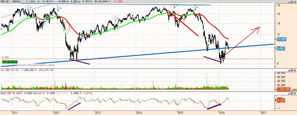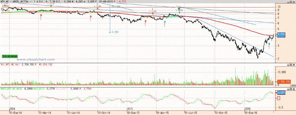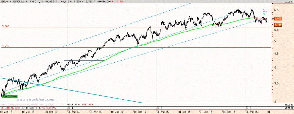 Está perdiendo esa bonita tendencia alcista que ha dibujado y que tantas alegrías nos ha dado. Nos pondremos el stop en los 5,45.