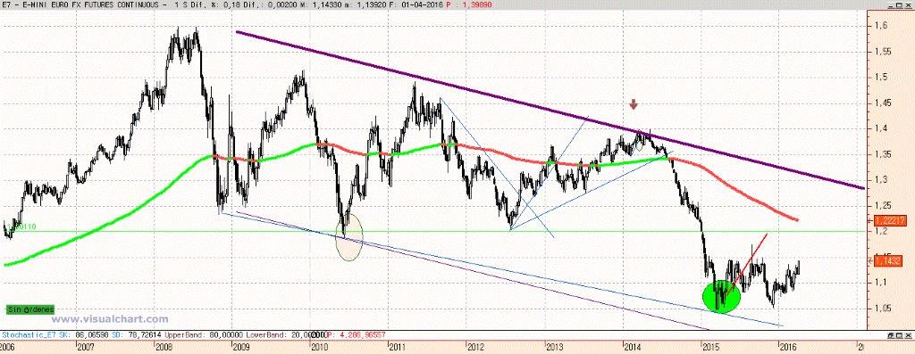 El euro dólar, a contracorriente de las políticas macroeconómicas de la FED y del BCE, se está apreciando conforme al análisis técnico de soportes y canalización del precio, en principio hasta la resistencia del 1,20.